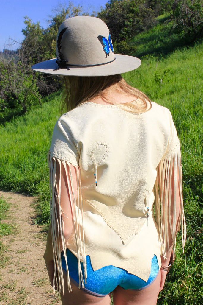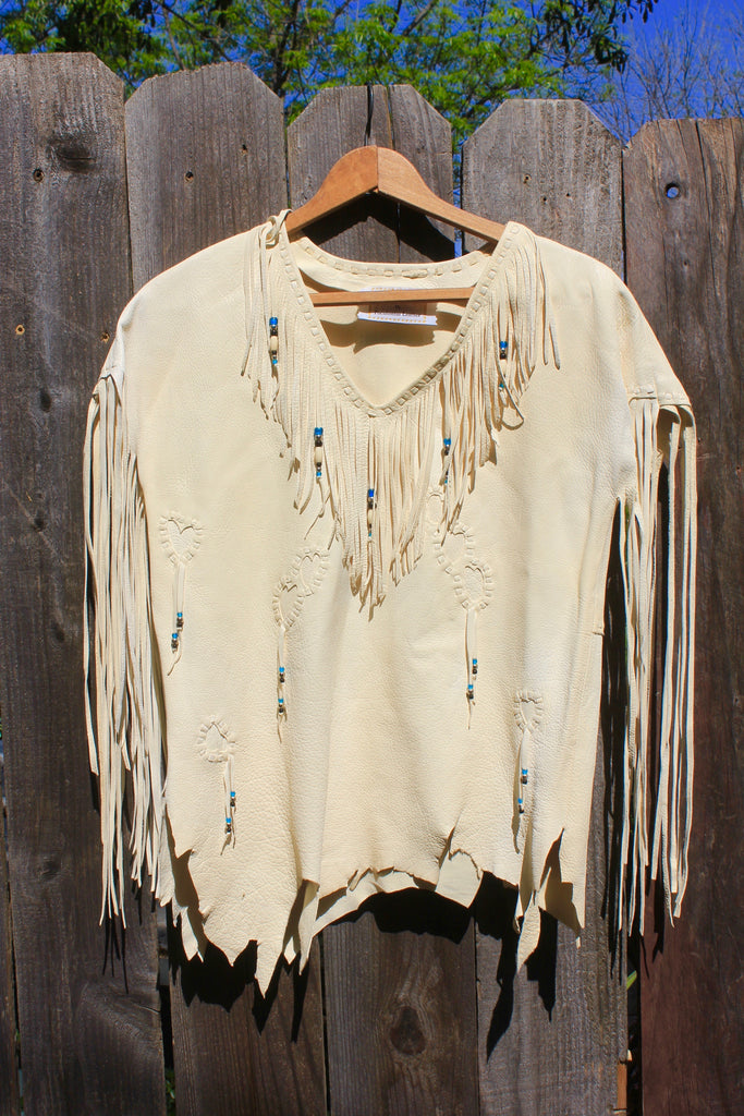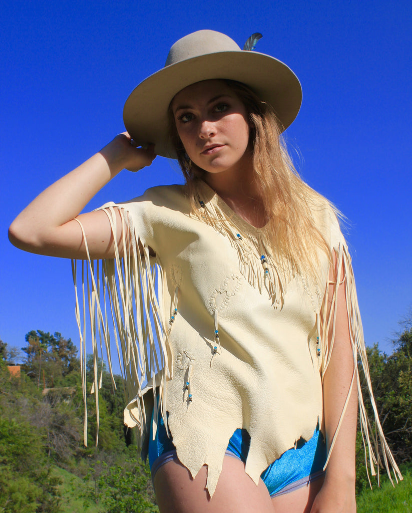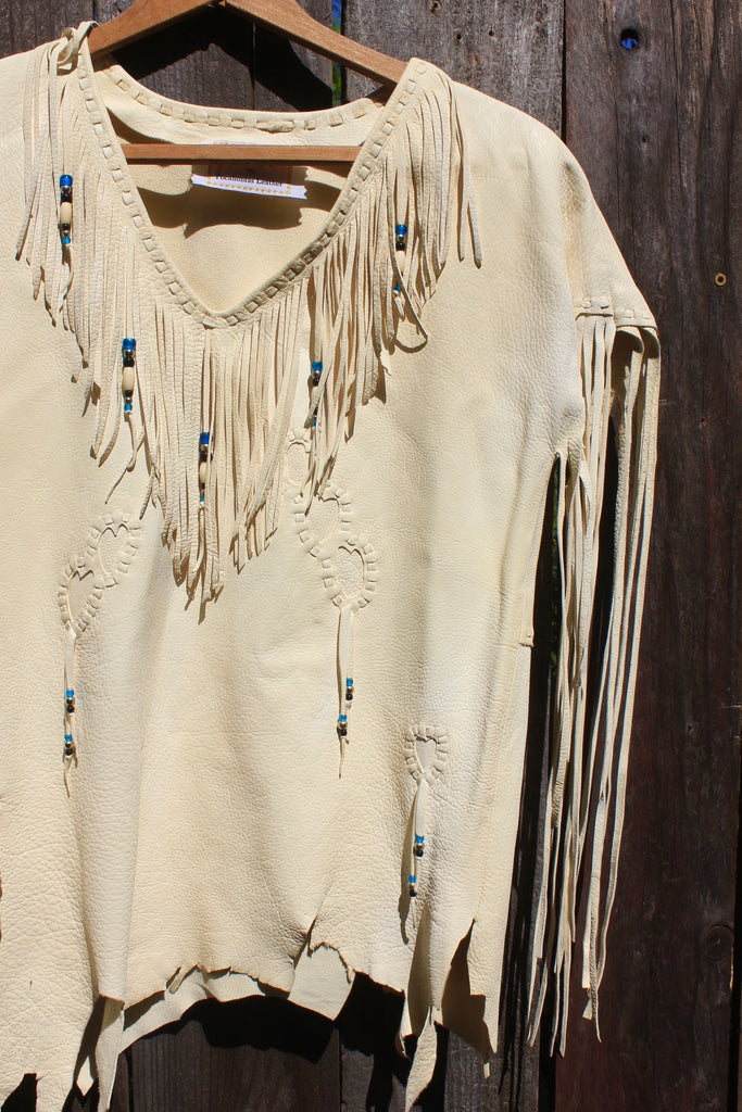 "Cheyenne Top" Handmade Deerskin Native Blouse Fringe and Beads and Fringe