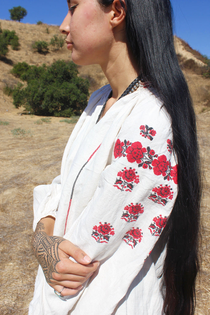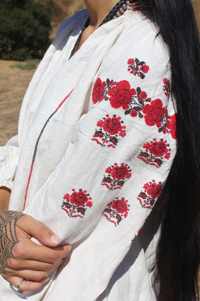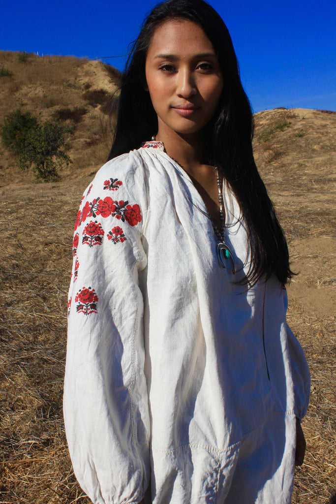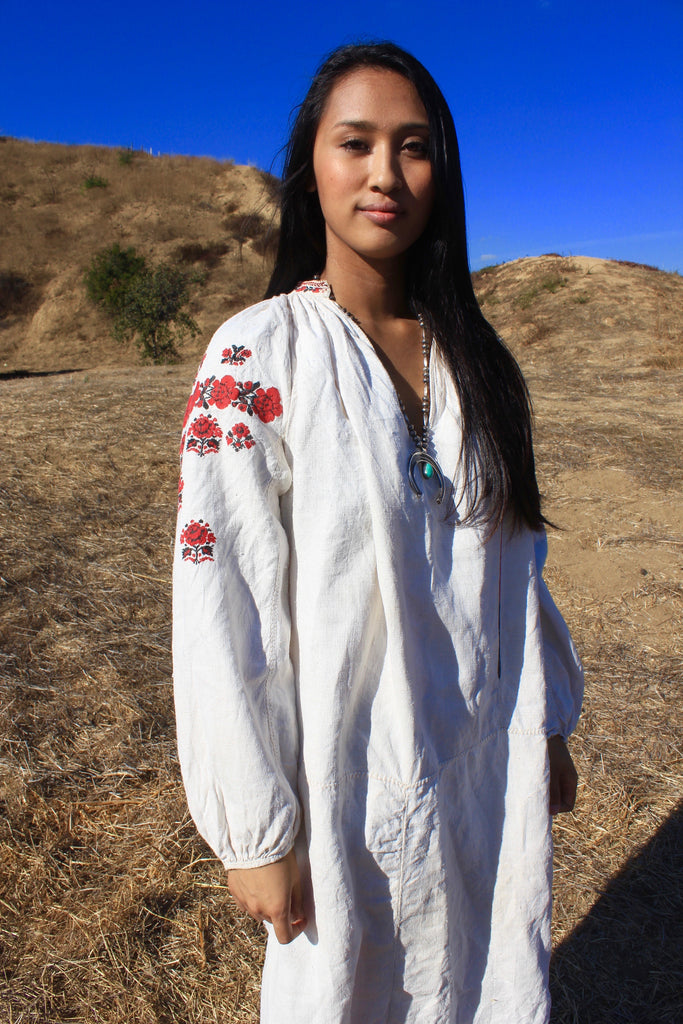 RESERVED "Homespun Folk" Antique Hand Embroidered Eastern European Folk Dress
