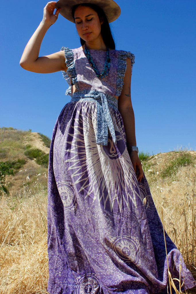 "Lilac Sun" Honeywood Original Pinafore Dress Indian Cotton Block Print