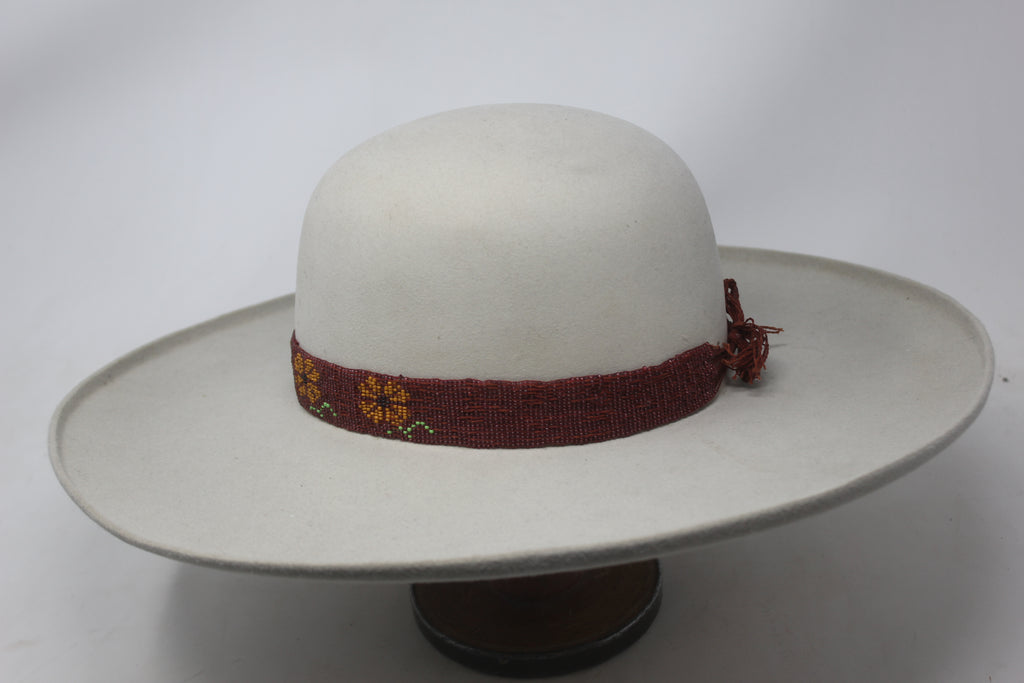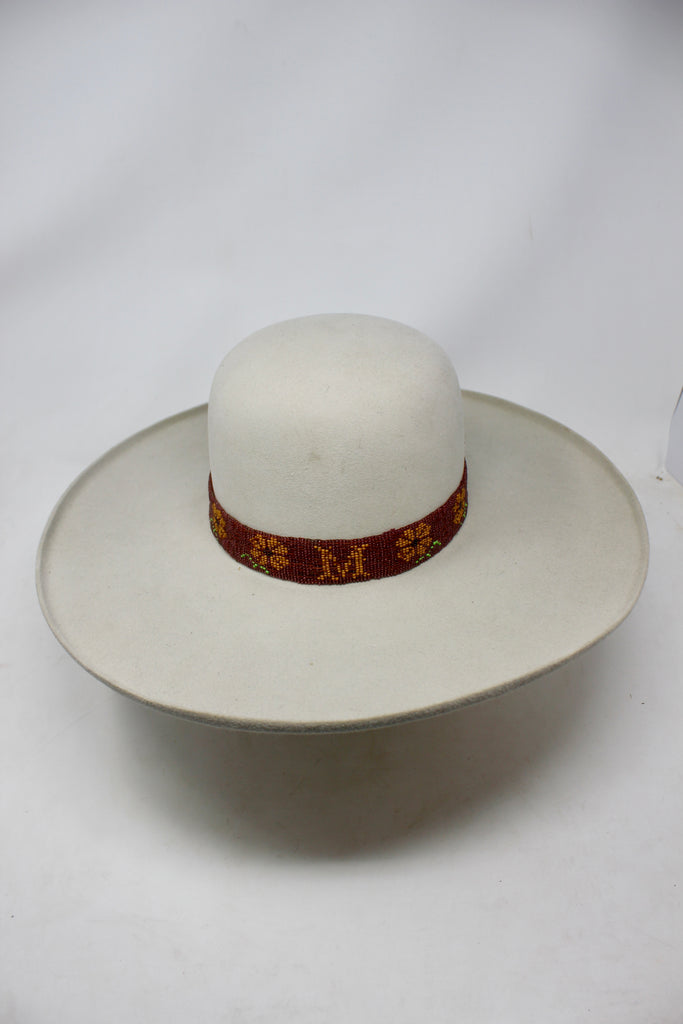 “M” Pure Beaver Lone Hawk WIDE Brim with Antique Native American Hand Beaded Bamd