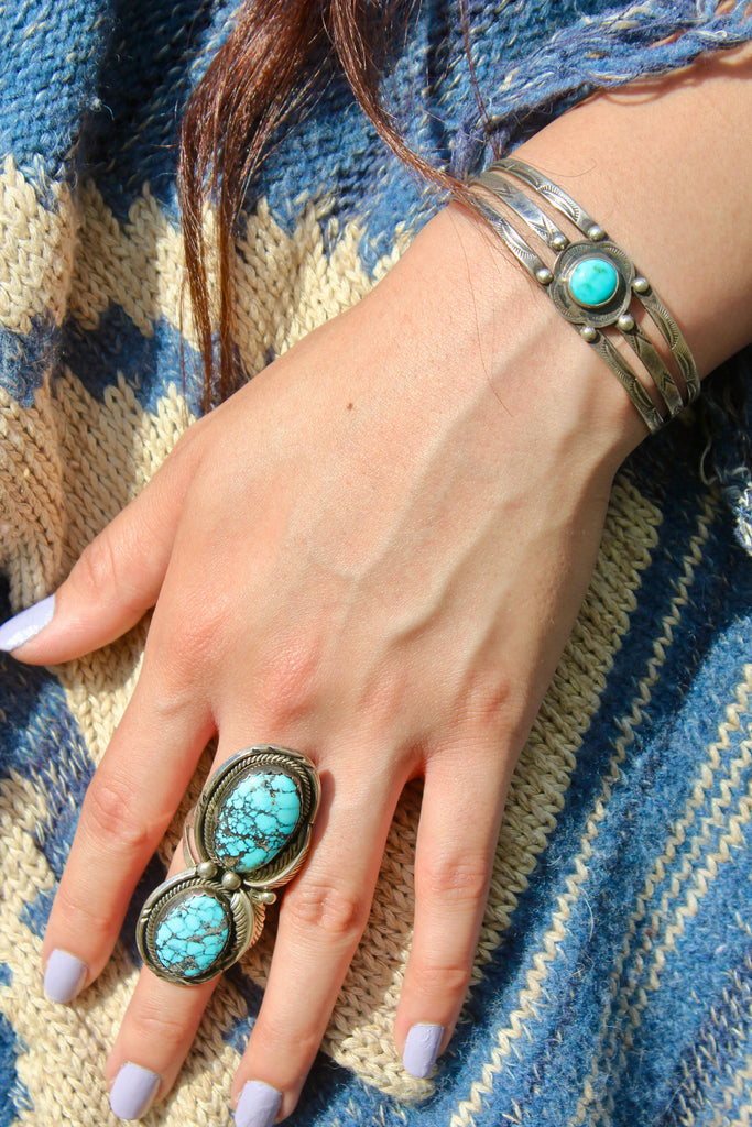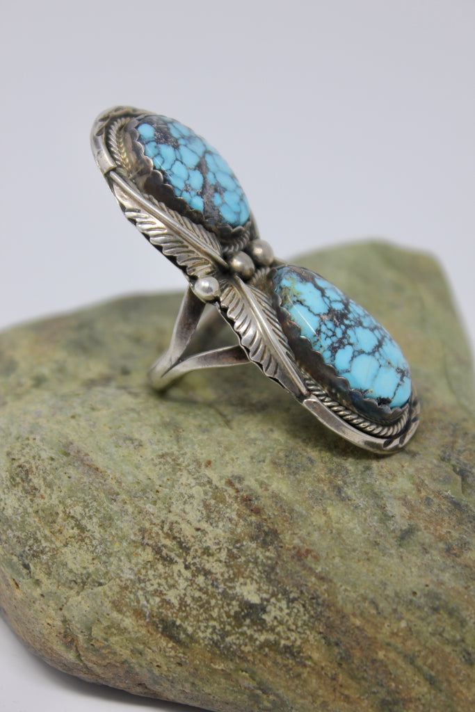 Navajo 1970s Kingman Spiderweb Turquoise Ring 8.5