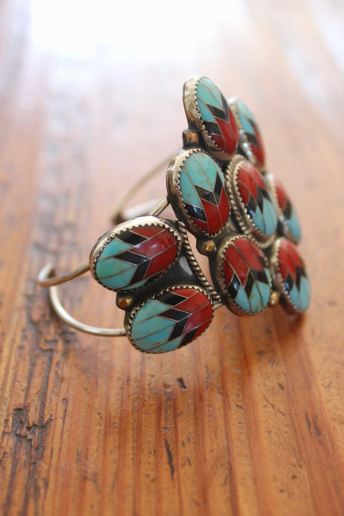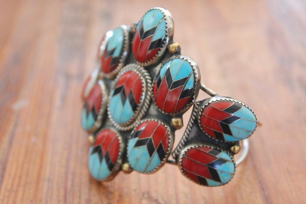 Navajo Inlay RARE and One of a Kind Coral and Turquoise Cuff from The Calamity Pass Collection