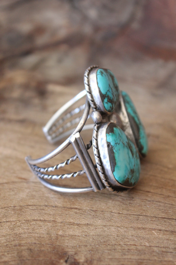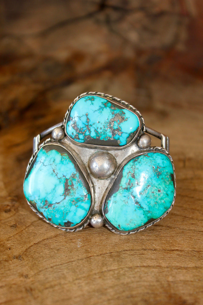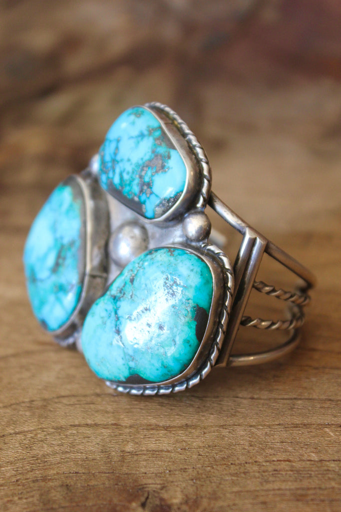 "Navajo Trilogy" 1930s HUGE Vintage Handmade Turquoise Cuff