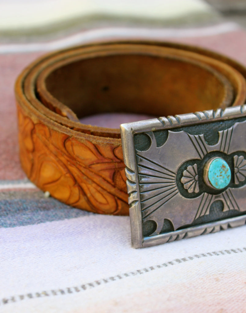 Art Nouveau Hand Tooled Leather Belt Buckle