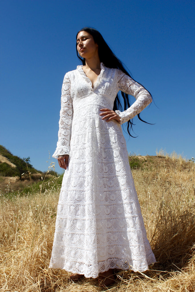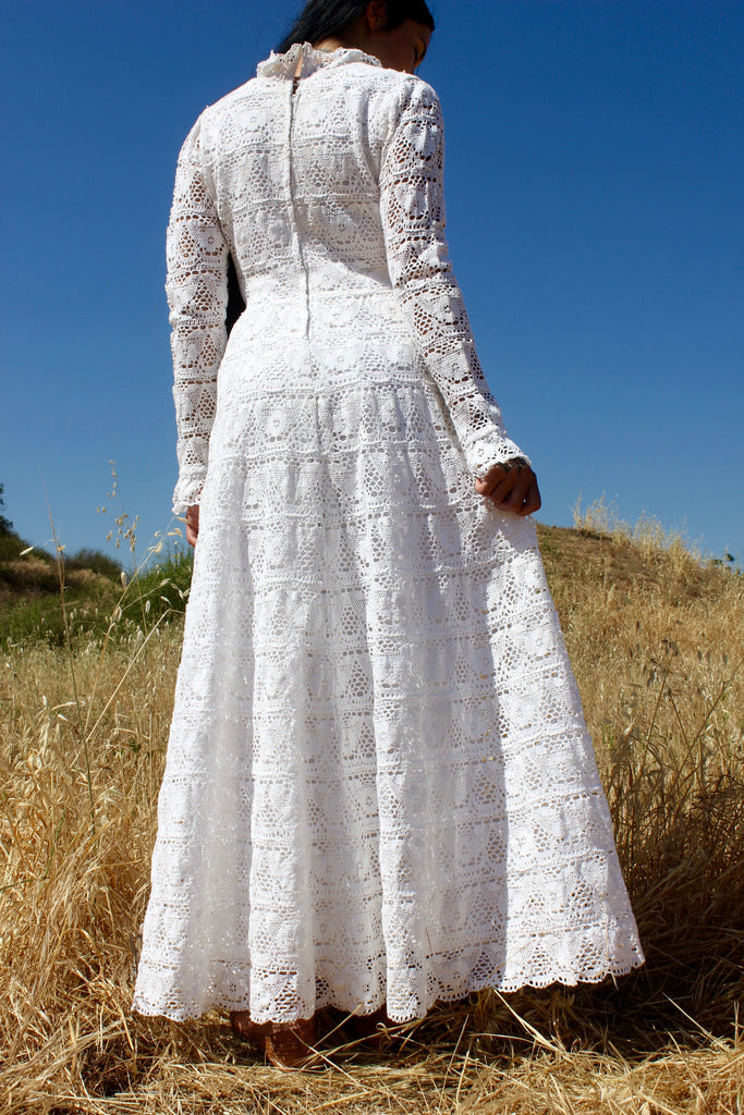 "Oaxacan Vows" 1970s Vintage Crochet Mexican Wedding Dress