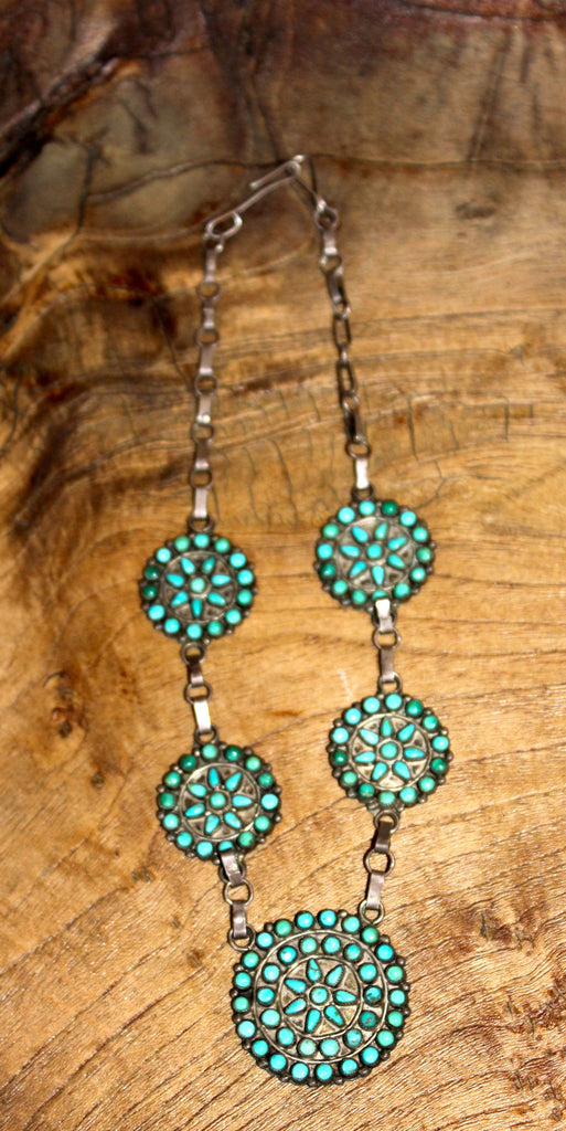 Reserved Old Pawn Cluster Petite Point Native American Turquoise Necklace