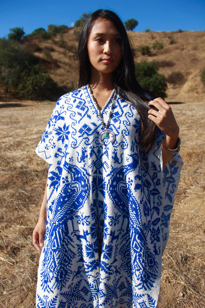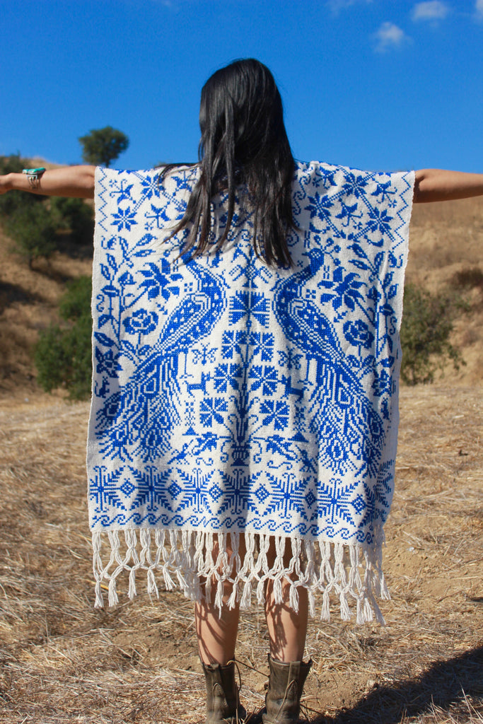 "Poncho Azul" Handmade Mexican Embroidered Poncho