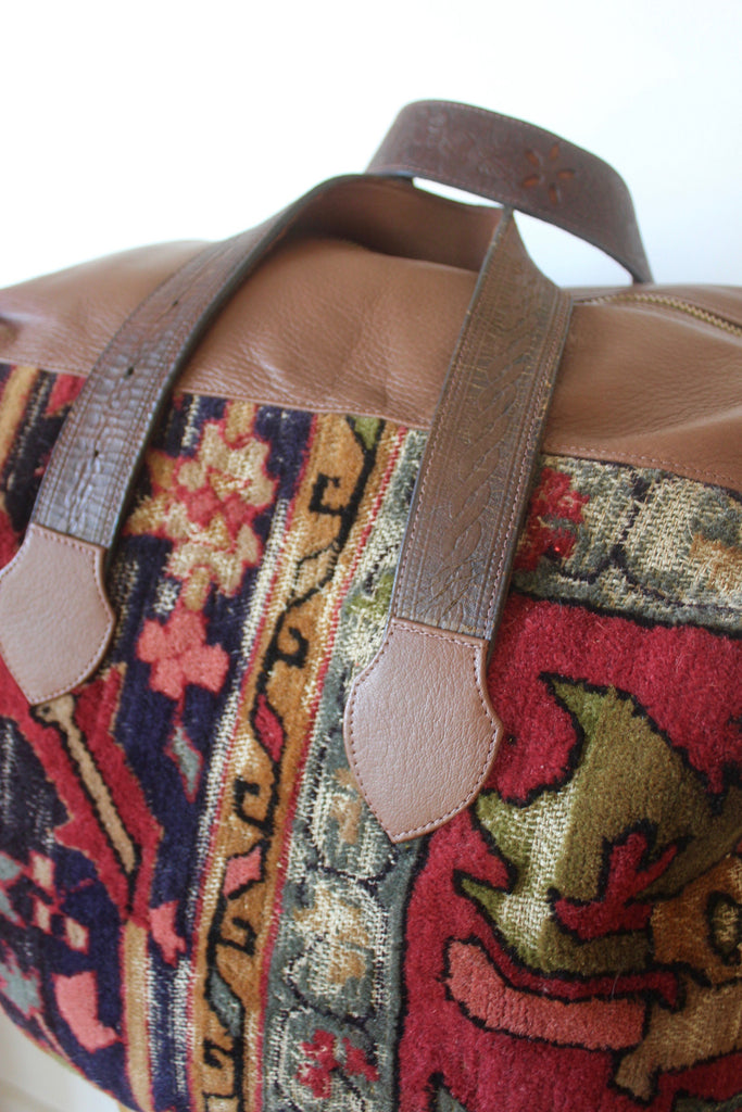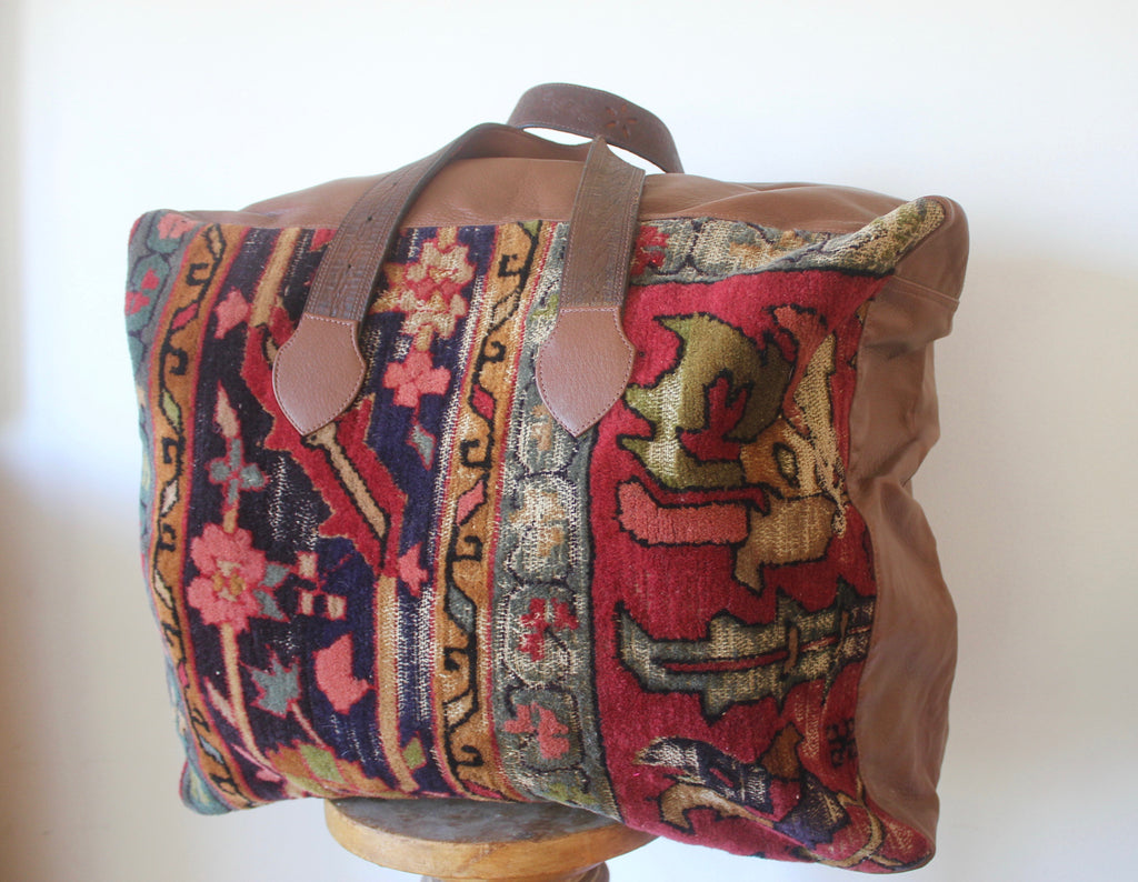 "TAOS LUXE" Giant Honeywood Handmade Antique Carpet Bag