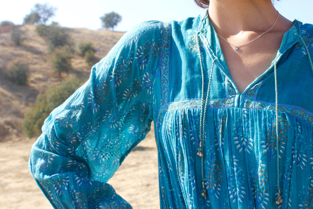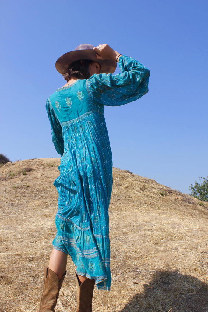 RARE "Jade Green" Vintage 1970s Indian Gauze Dress