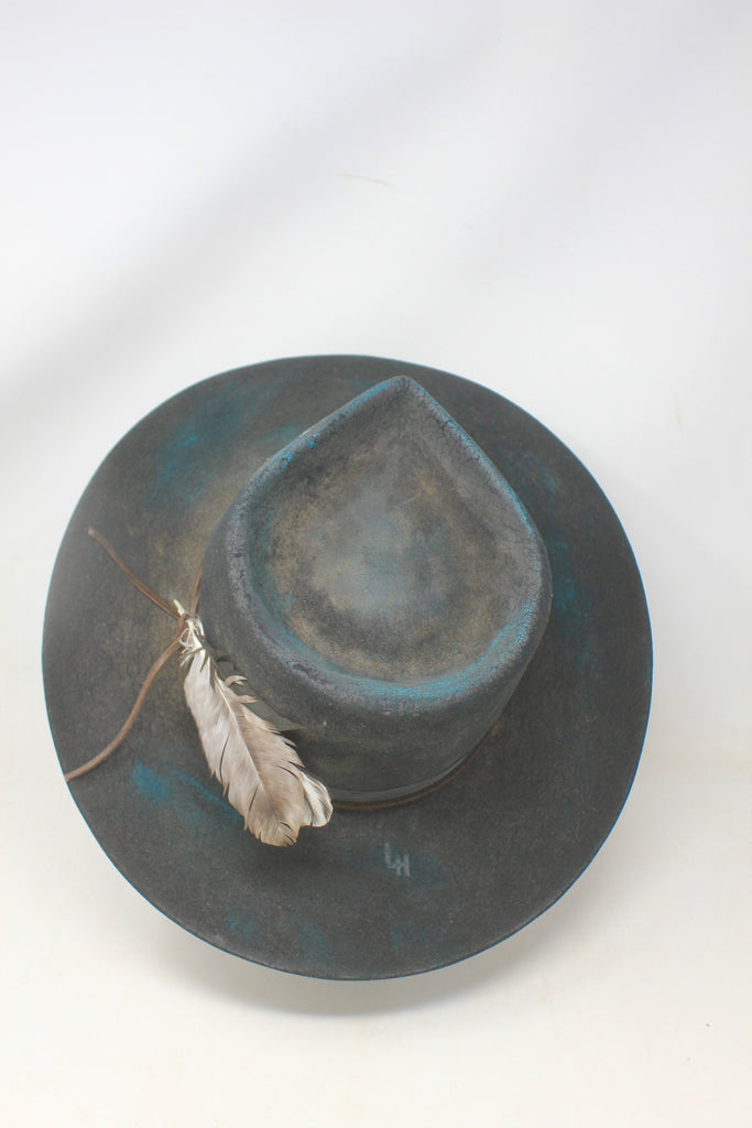 Ready to Ship Hand Painted Lone Hawk Hat “Pinch” 6 7/8 - 7