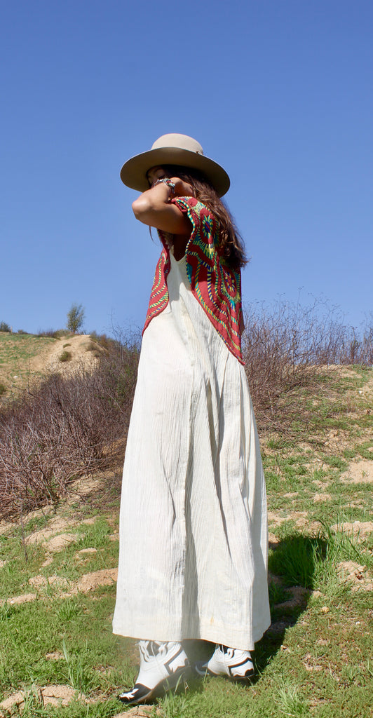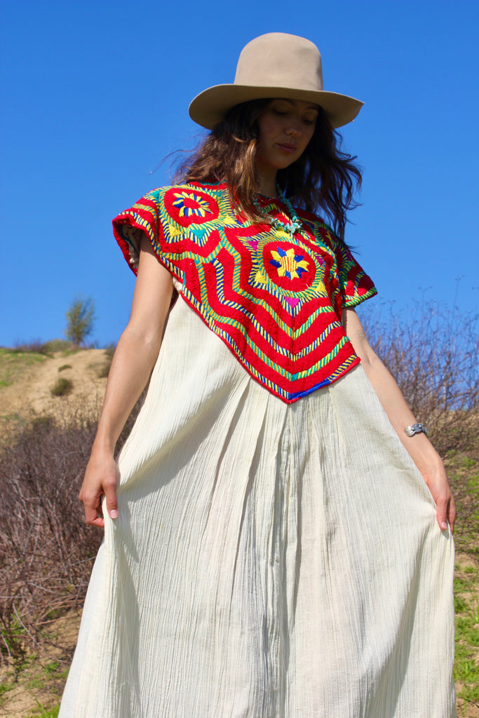 1970s One of A Kind Hand Embroidered San Mateo Huipil Dress