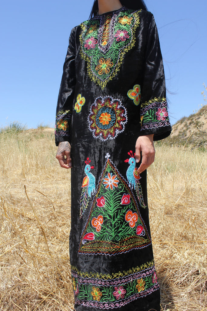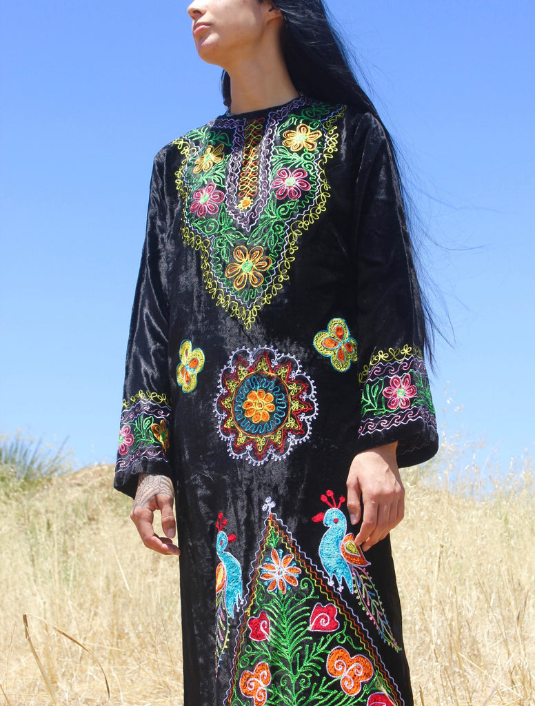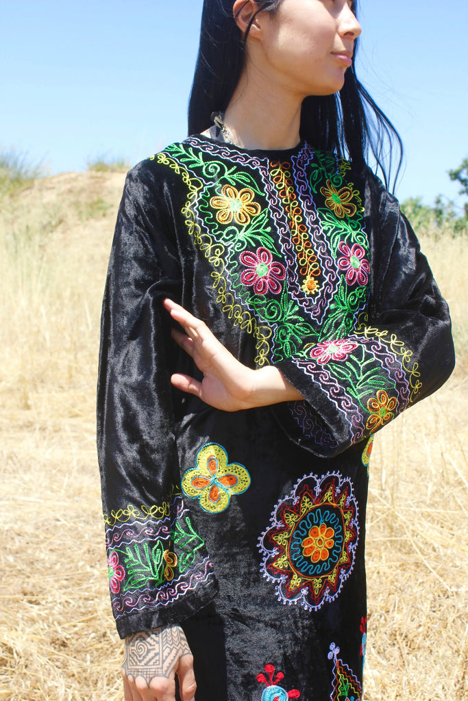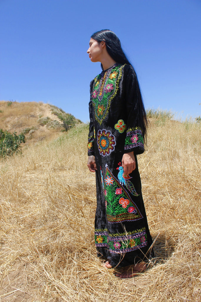 "Sister of the Moon" Black Velvet Embroidered Kaftan