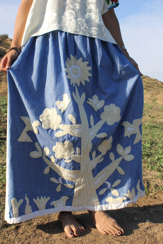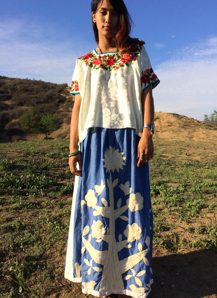 1970s Folk Art Vintage Hand Embroidered "Tree of Life" Mexican Maxi Skirt