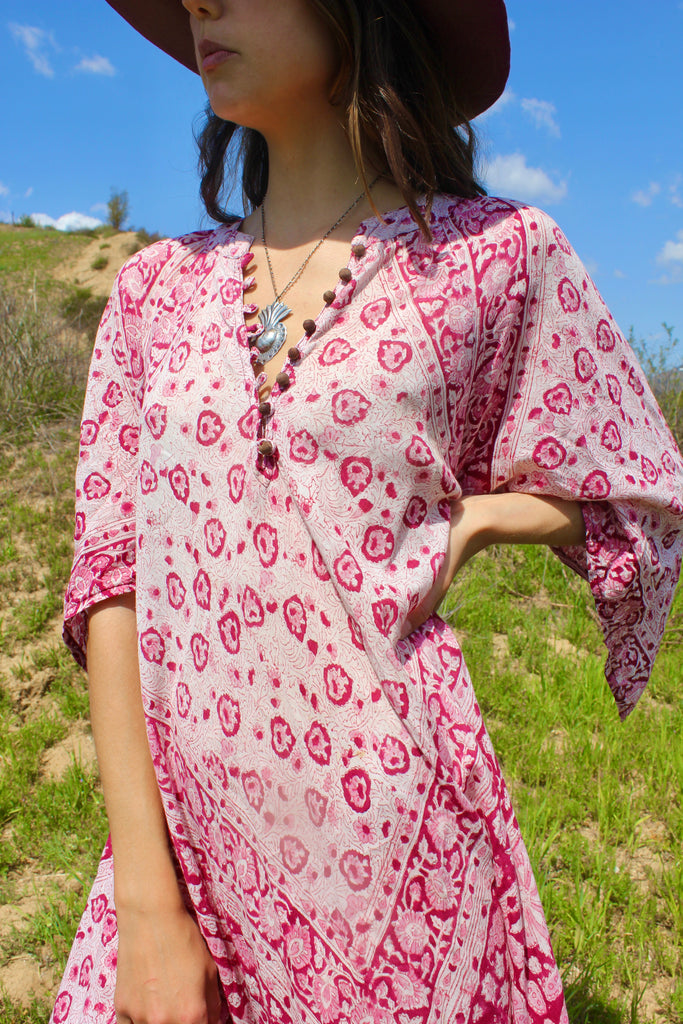 "Rosè" Vintage 1970s Adini Style Indian Block Print Gauze Dress