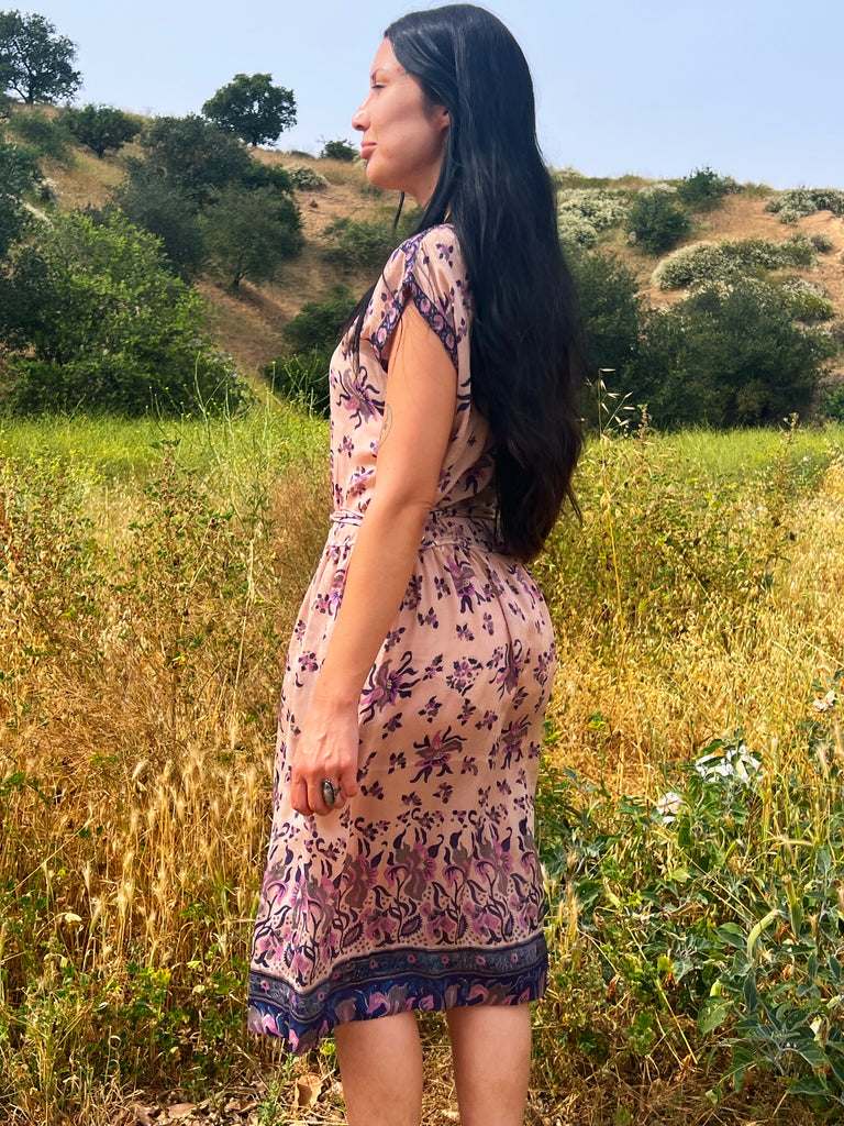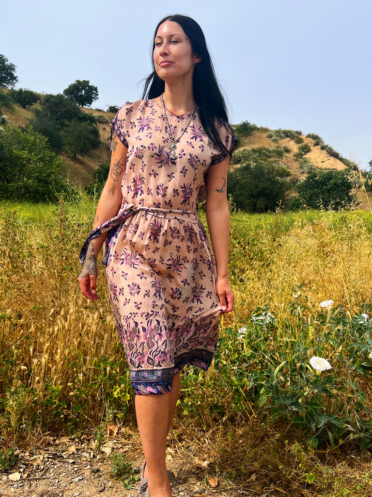 Vintage 1970s Silk Adini Block Print Summer Dress