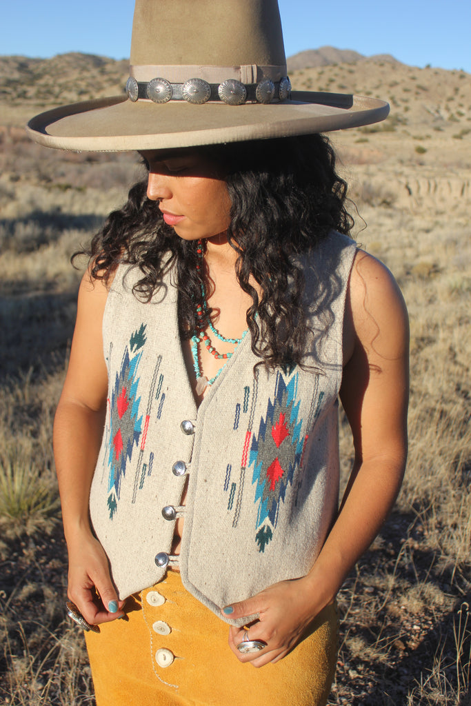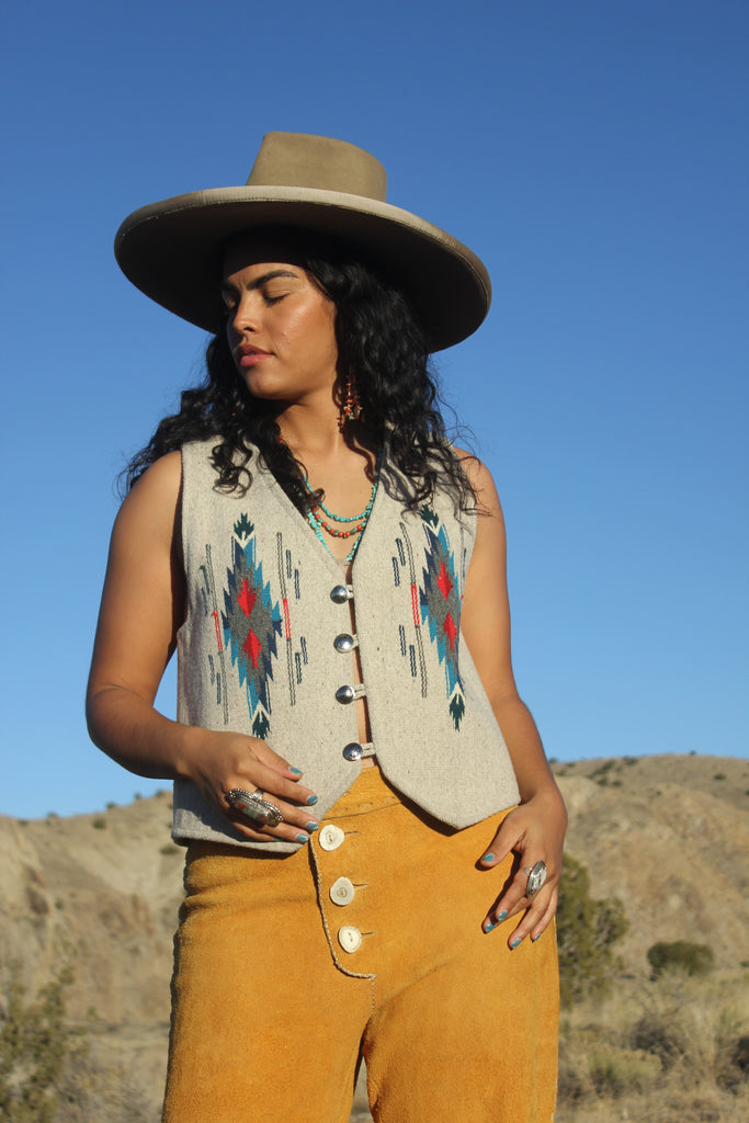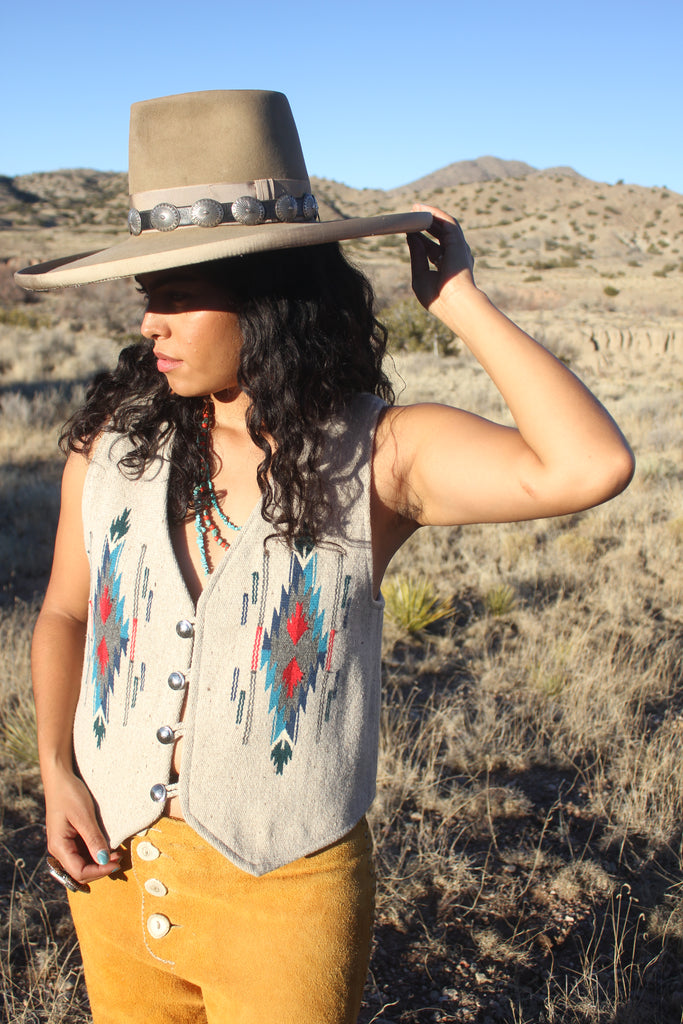 Katherine Maxwell Natural Cochineal hand woven Taos Remnants Beanie