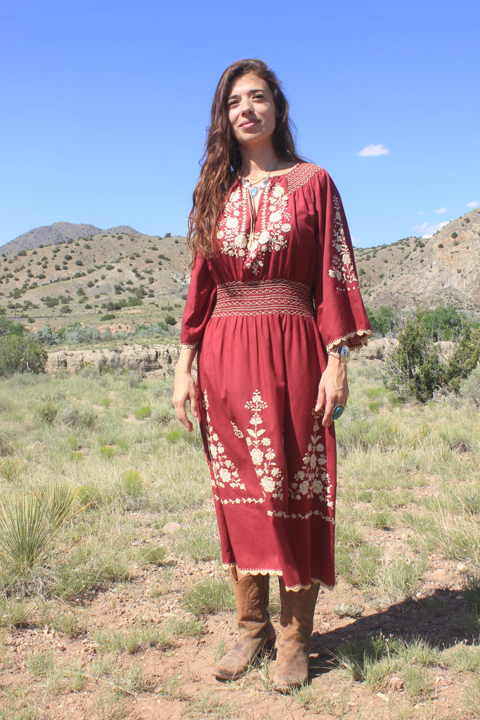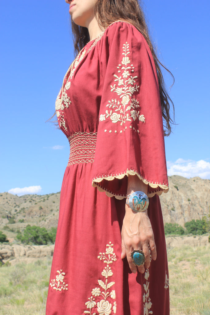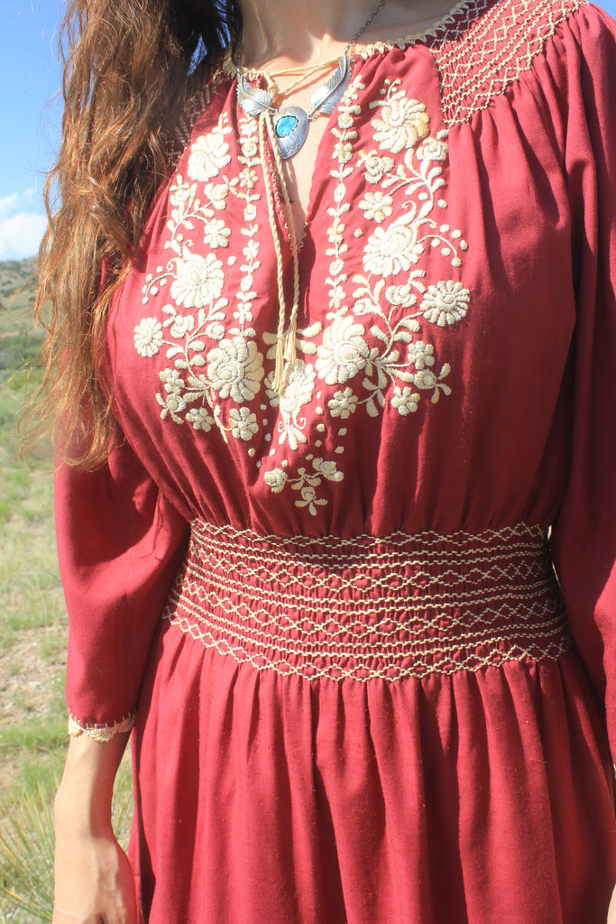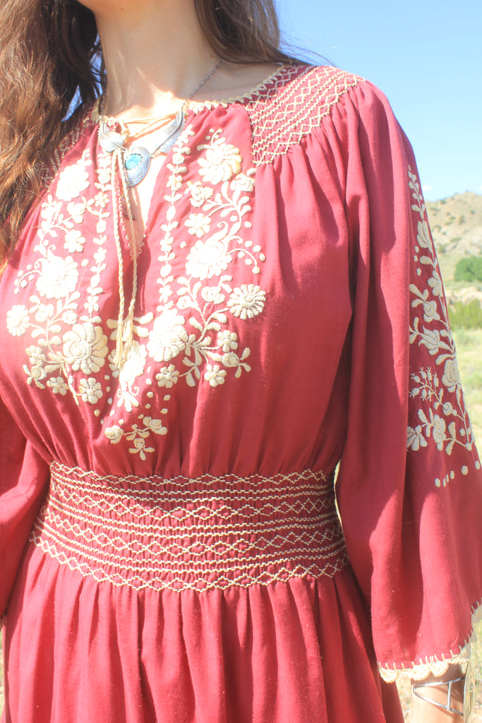 Vintage Hand Embroidered Hungarian Folk Dress M/L