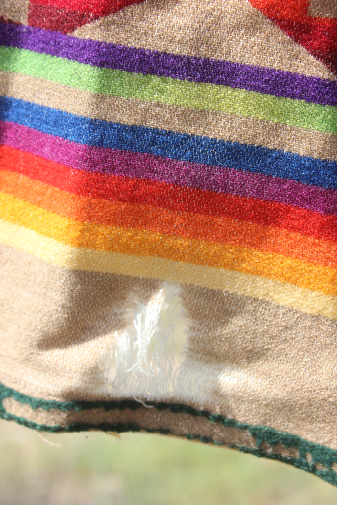 There is some wear on this beauty, on the edges and a thread bare area on both ends can be seen in photo. Still lots of life left and displays beautifully. Price reflects this