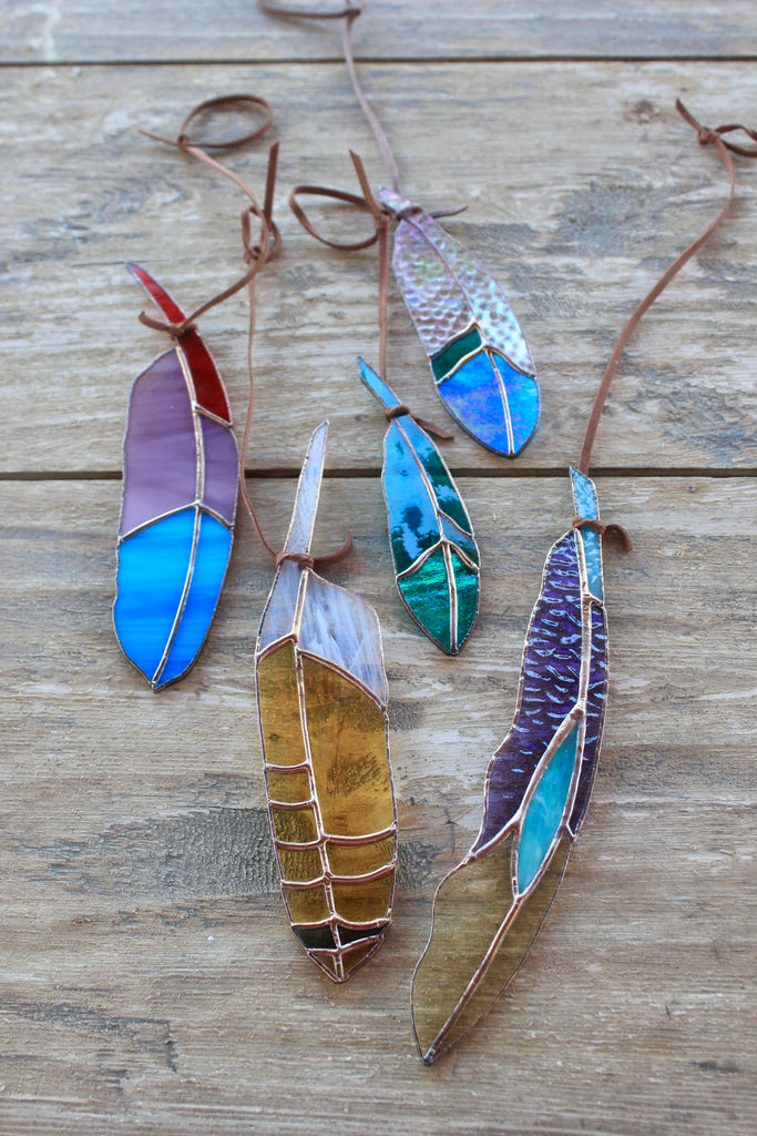 We are super in Love with these handmade Stained glass feathers from Colin Adrian Glass Studio.