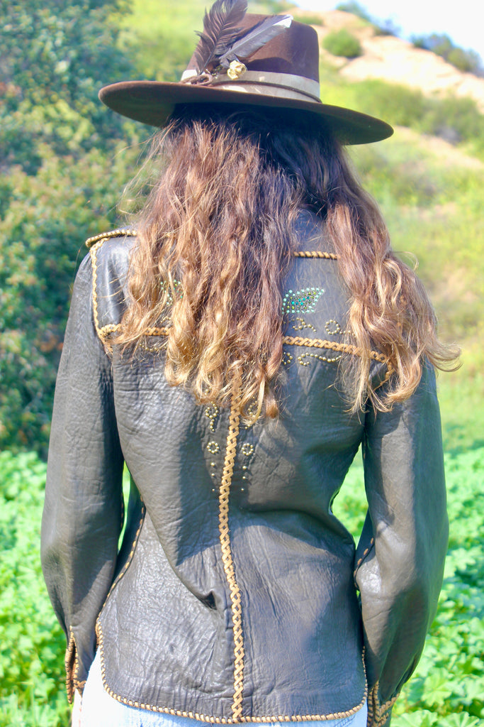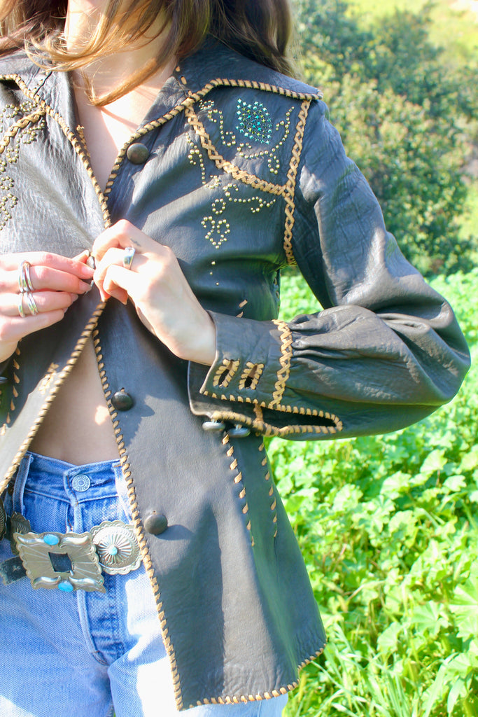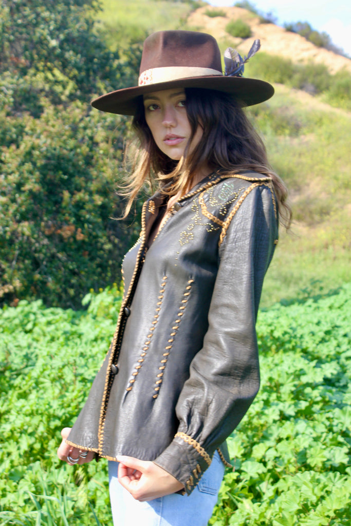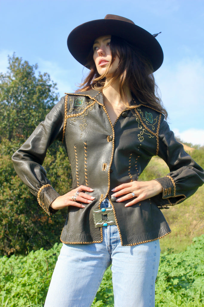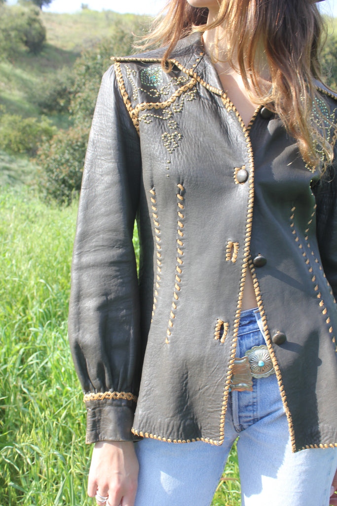 1960s North Beach Leather Whipstitched Custom Leather Shirt