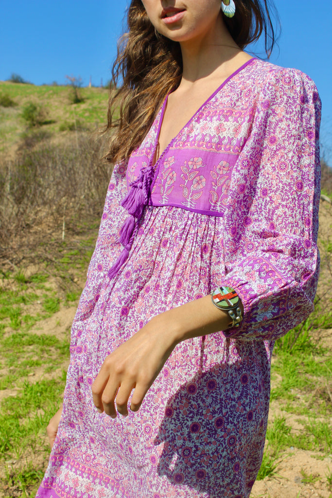 Vintage Gauzy Lilac Indian Block Print Dress