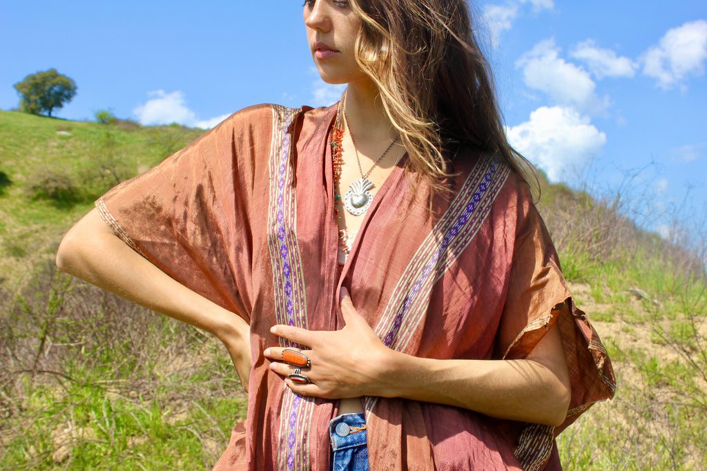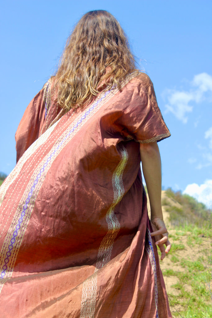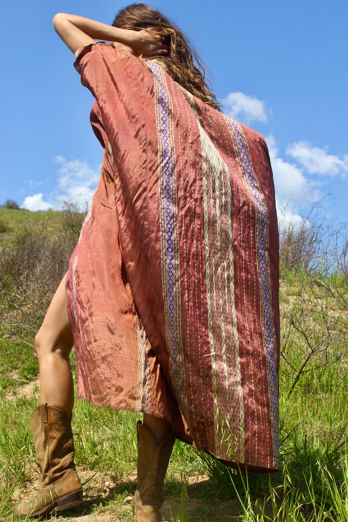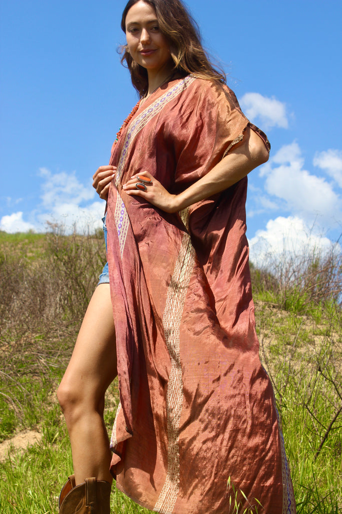 Mid-Century Bedouin Duster Kimono Metallic Thread