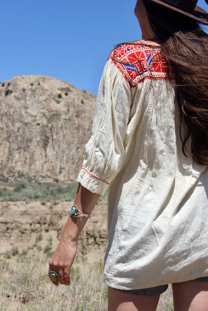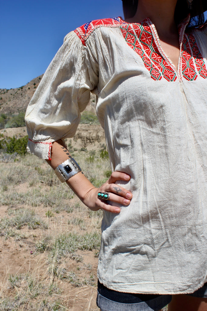 Vintage Mexican Chenteña Hand Embroidered Folk Art Blouse Circa 1960s